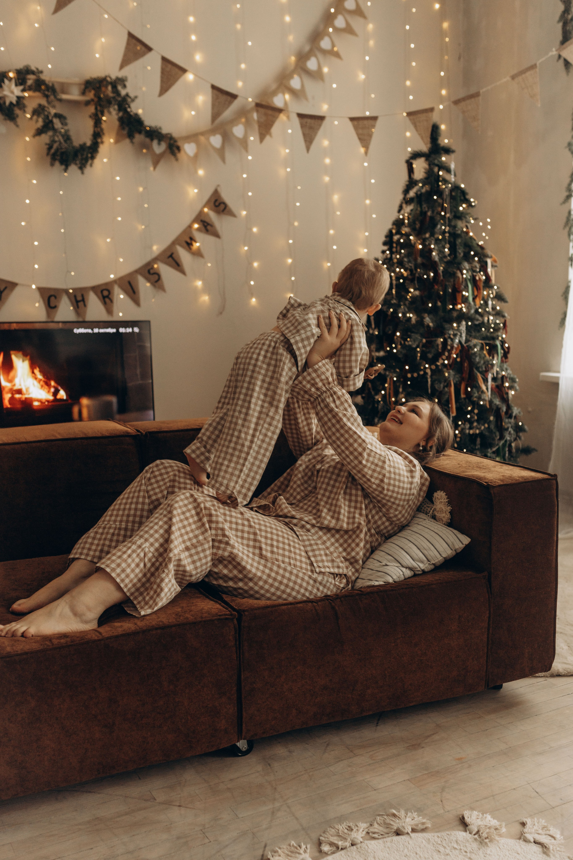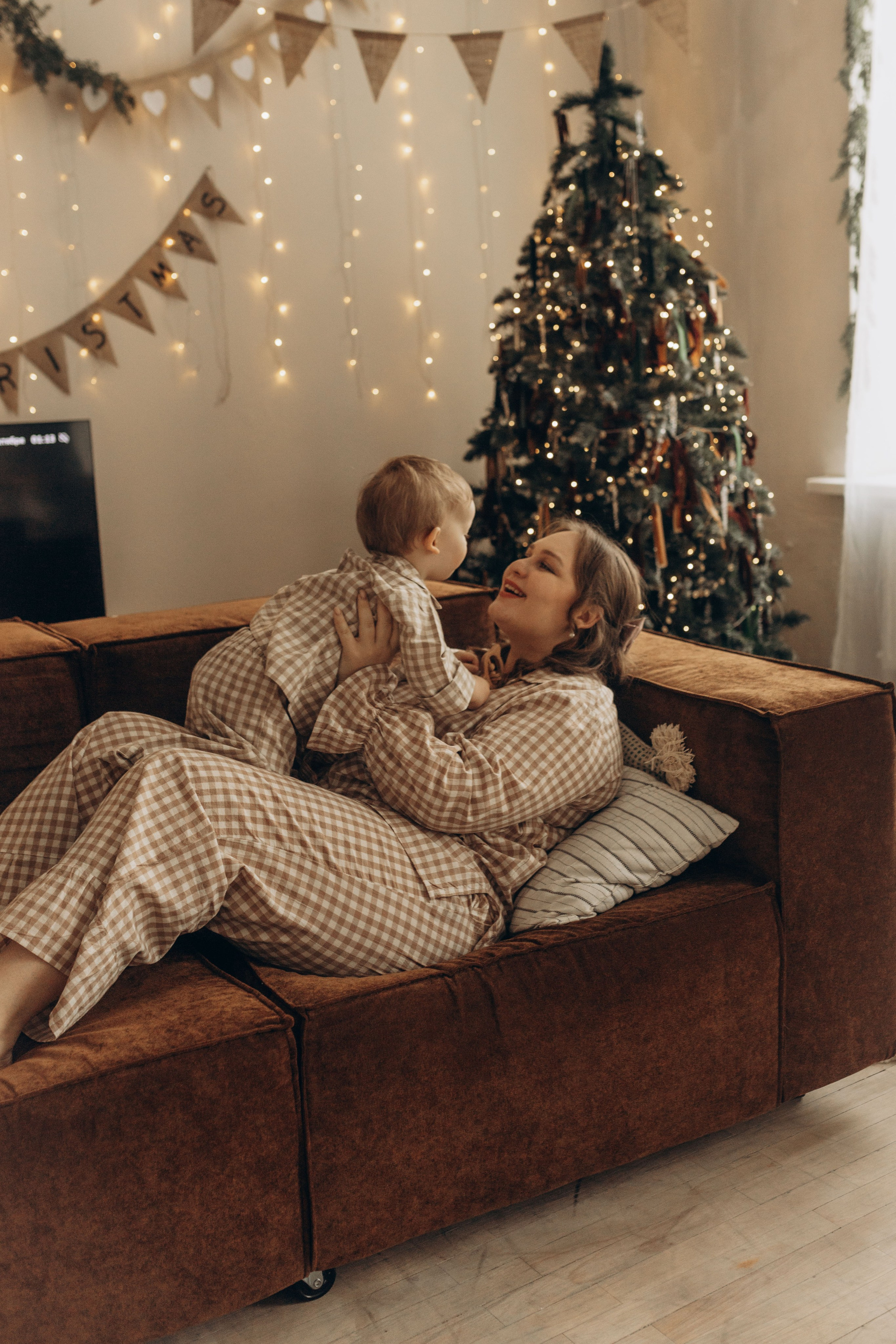 Яркий новый год мама и 2 сыночка.